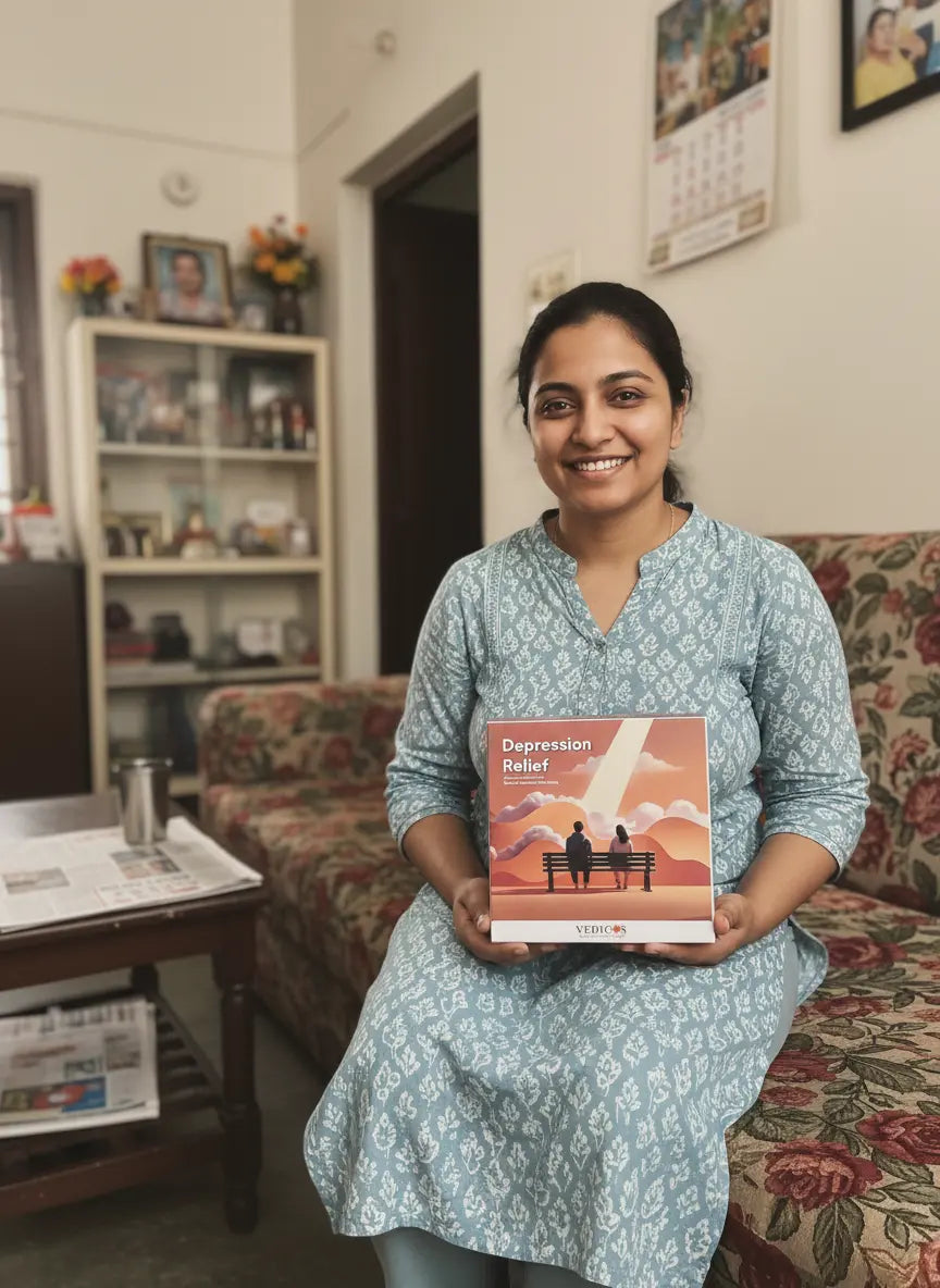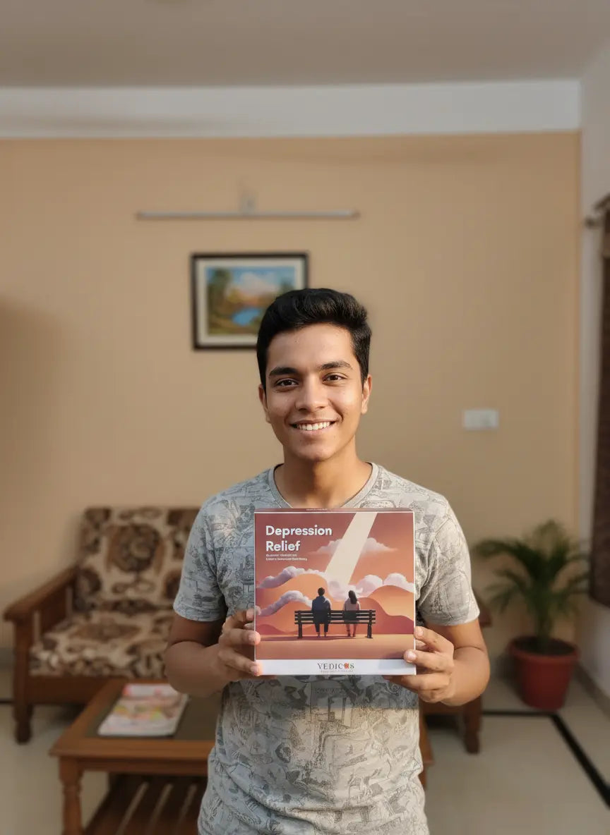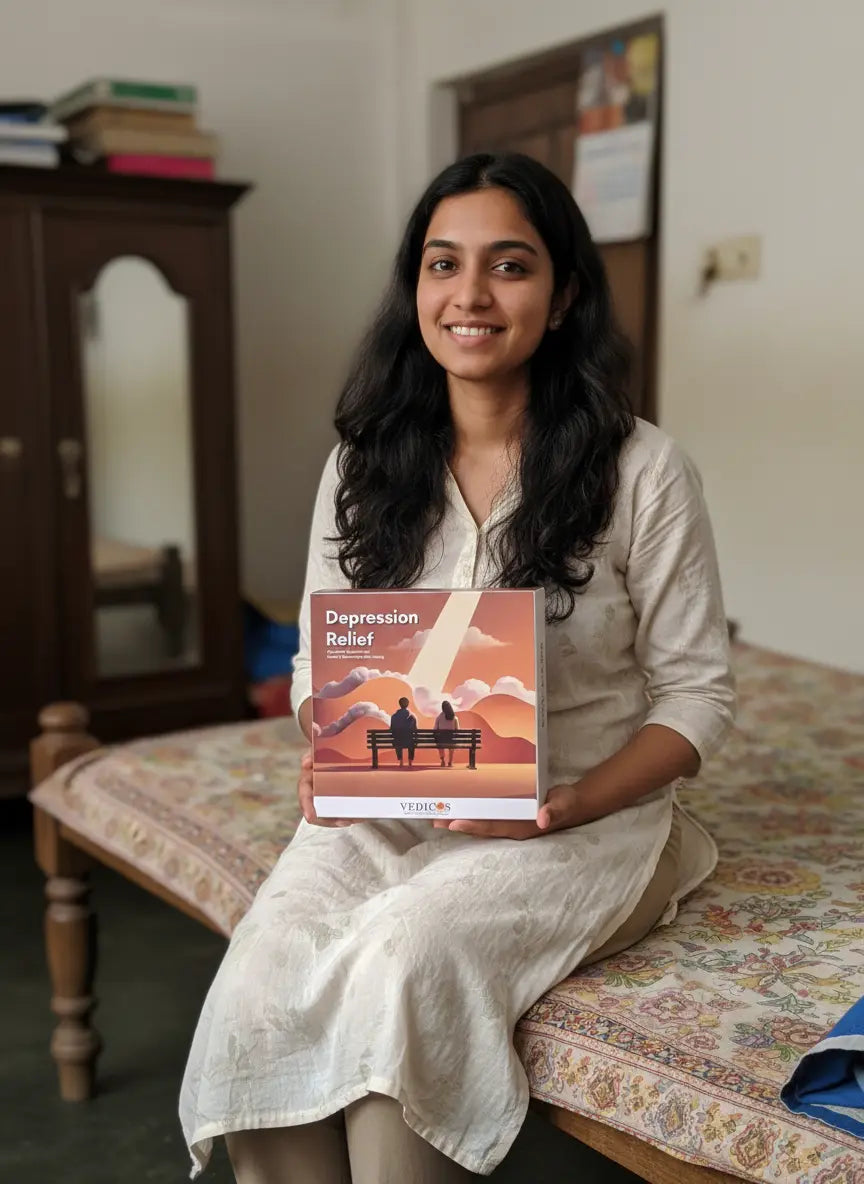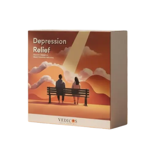 The Vedicos Depression Relief Pack is a 2-in-1 program that combines Ayurvedic medicine and CBT-based therapy to support emotional balance, mood improvement, and long-term mental well-being.