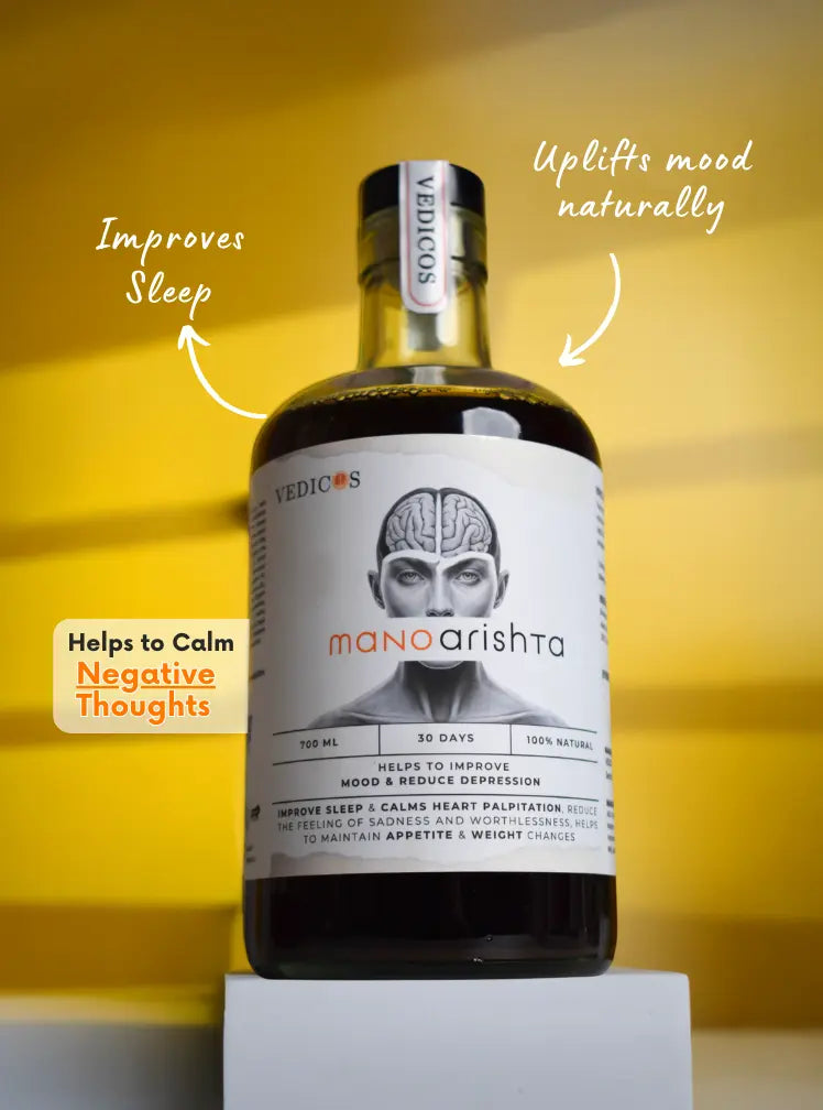 Manoarishta helps calm the nervous system, reduce anxiety, improve mood, and support better sleep by acting on the mind–brain connection.
