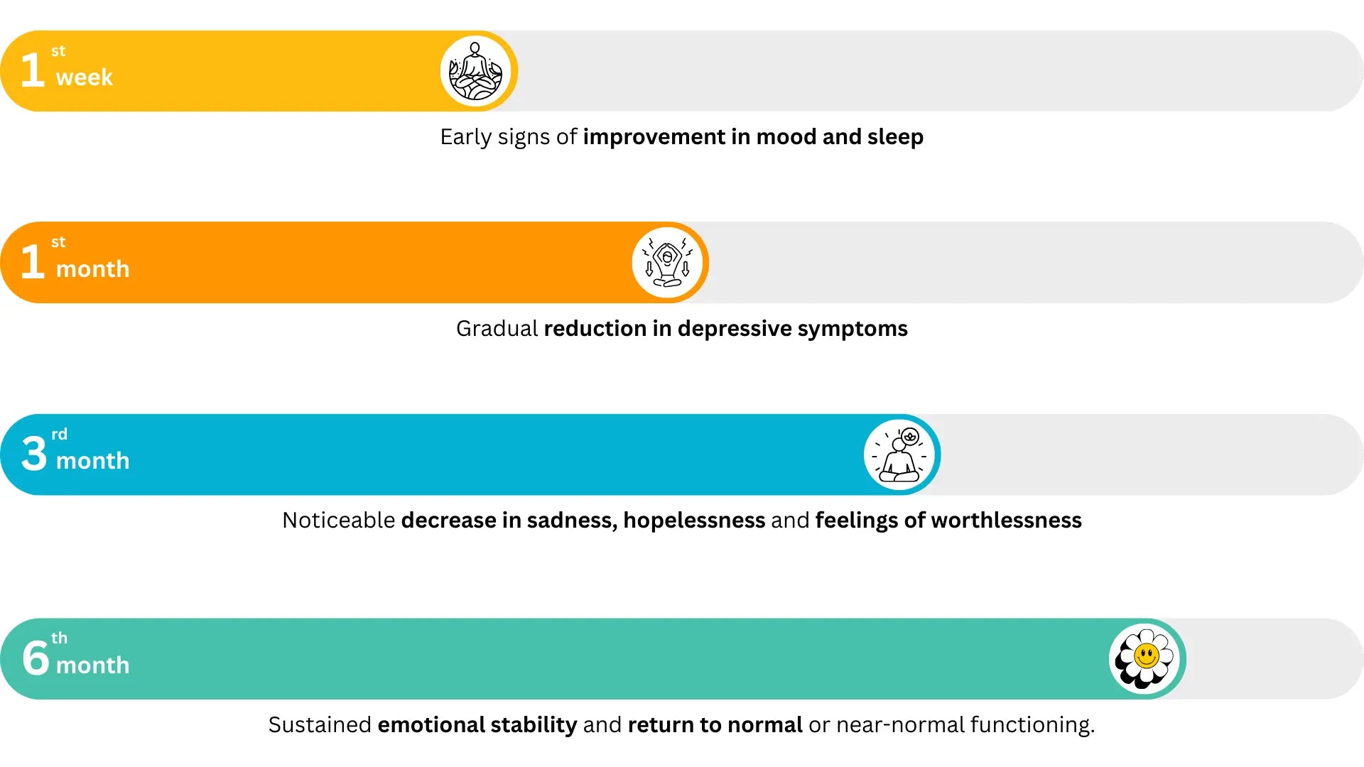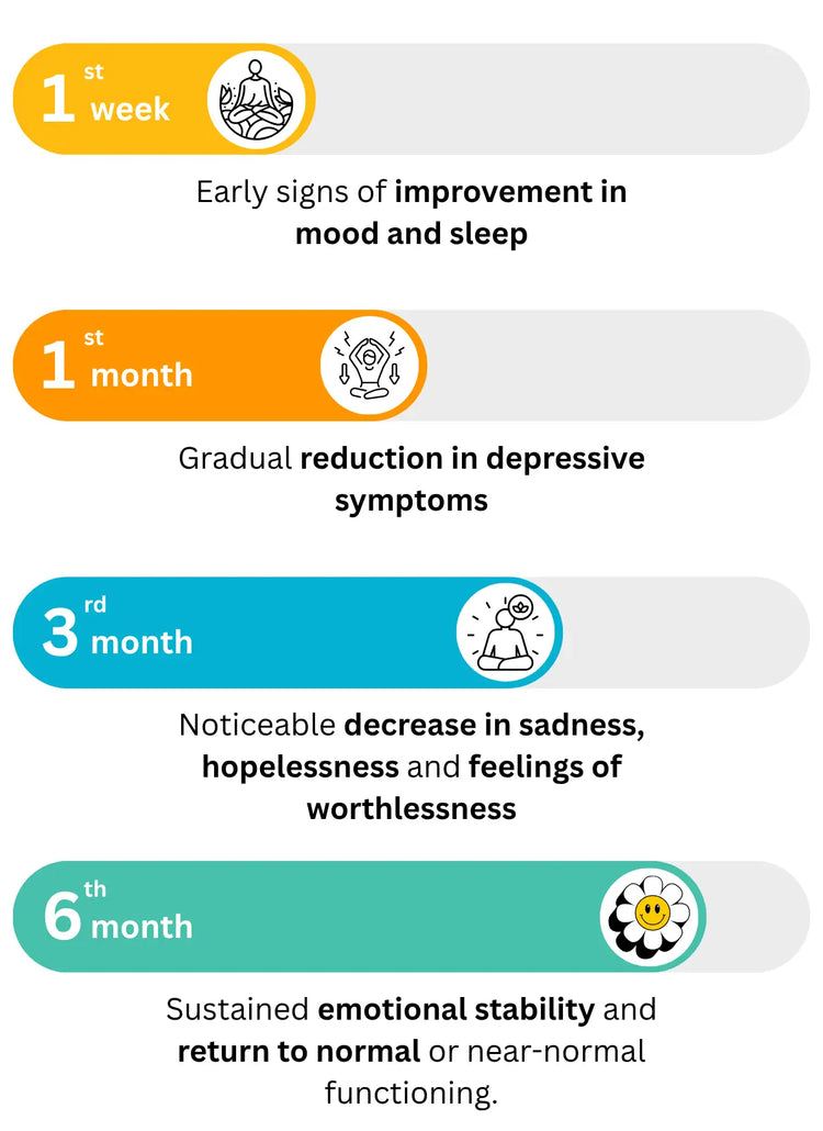 Some users feel calmer within weeks, while consistent improvement in mood, sleep, and energy is usually seen over 2–3 months.